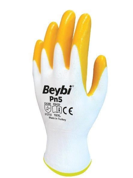 Beybi Pn5 Poly Örme Nitril Eldiven - SArı-Beyaz - 9