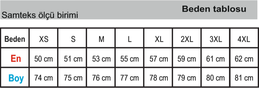 • Beden Aralığı: XS - 3XL