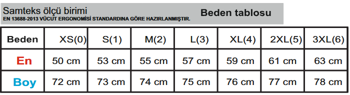 • Beden aralığı: S - 3XL