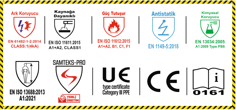 Opsiyonel: Kapişon, Takviye Dizlik, 2. ve 3. Katman Güç Tutuşur Keçe+Güç Tutuşur Astar
